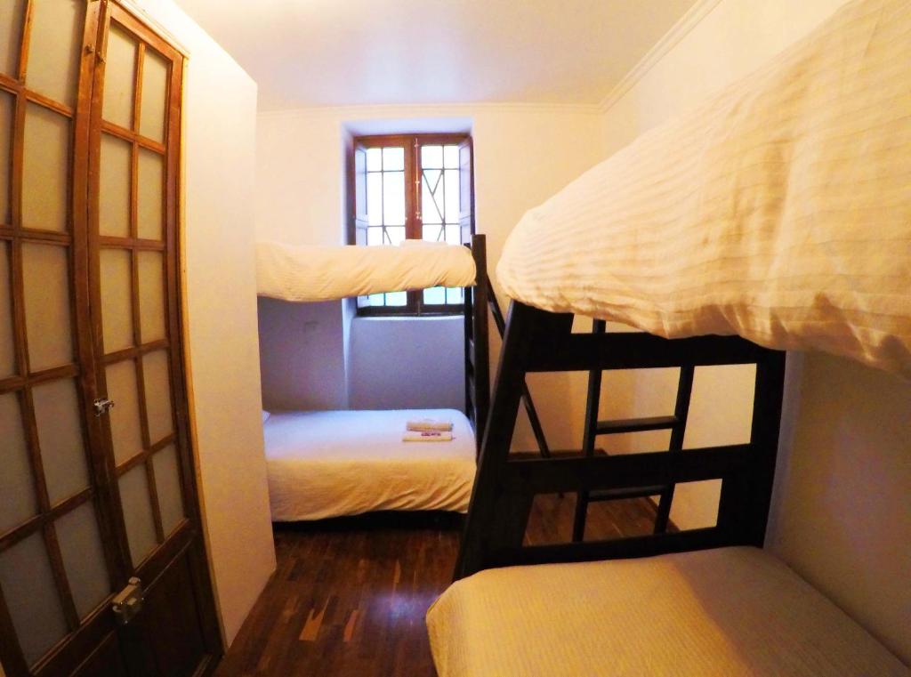 Nuestra habitación cuádruple está equipada con dos literas de diseño robusto, optimizando cada metro cuadrado para ofrecerte libertad de movimiento.